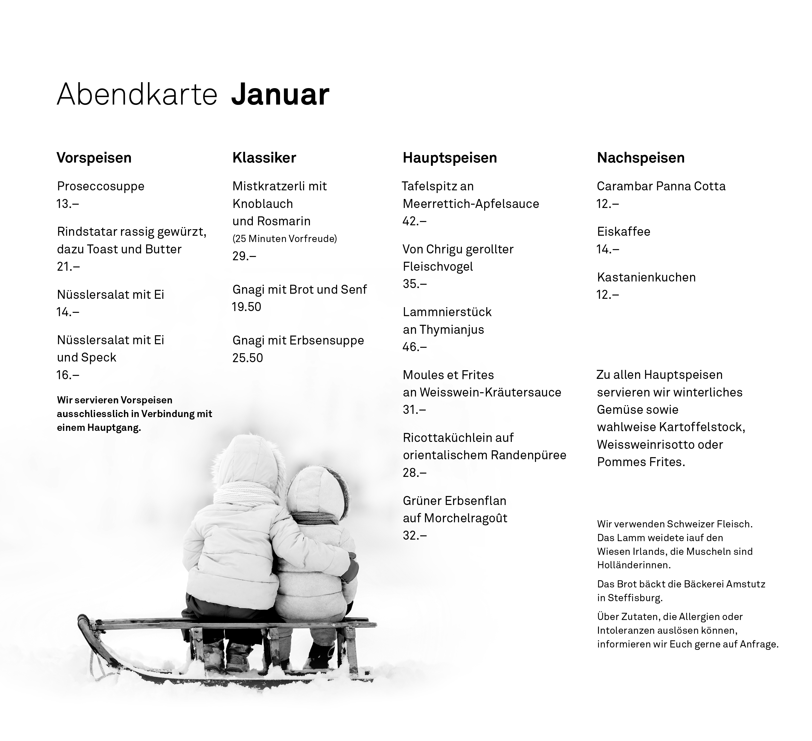 Mit jedem wechselnden Monat wechseln wir auch unsere Abendkarte.