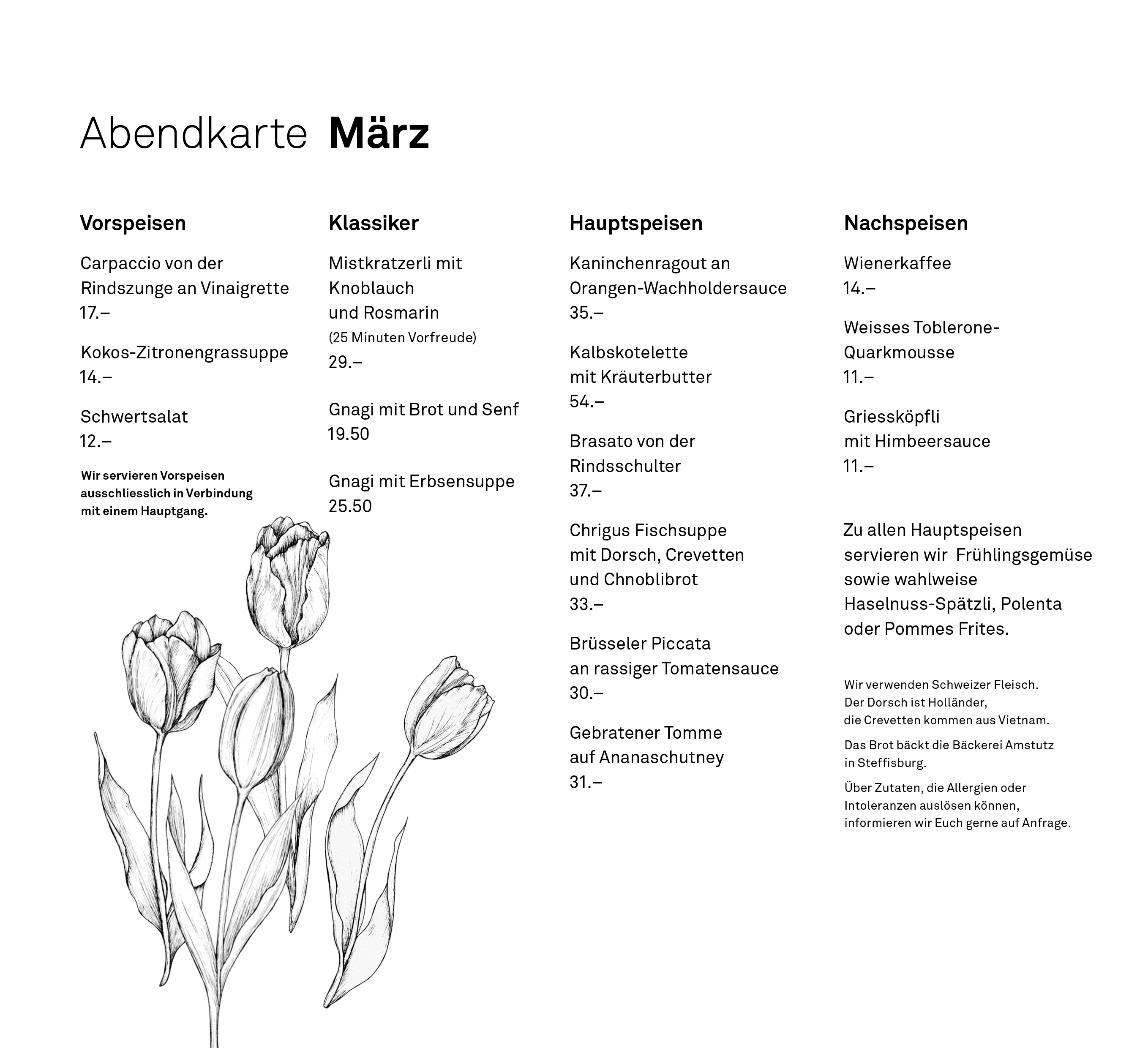 Mit jedem wechselnden Monat wechseln wir auch unsere Abendkarte.